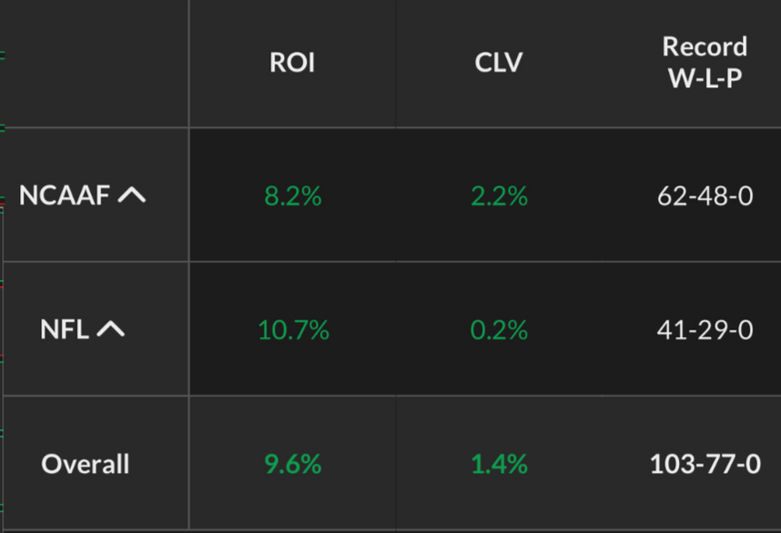 We are not just “selling picks”. We give you complete access to our NFL and College Football models as an easy to read betting table. You will see where the edges are and are not for every NFL and D1 CFB matchup